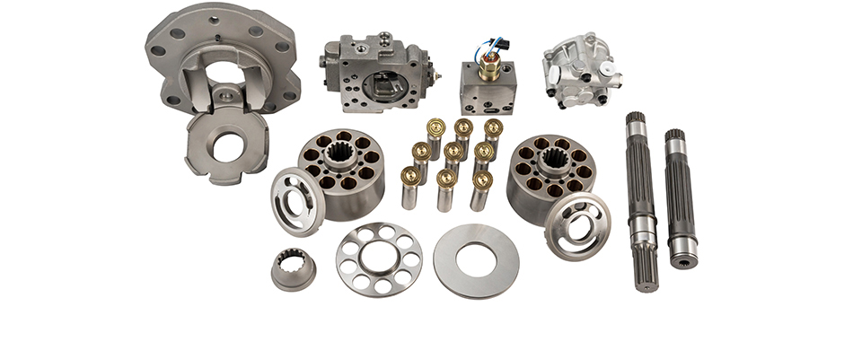 The main pump is one of the important hydraulic parts of excavator that drives the vehicle with hydraulic power. It converts kinetic energy generated from the engine to hydraulic energy. With the supplied kinetic energy from the engine, the pump regulates flow rate with displacement of the piston.