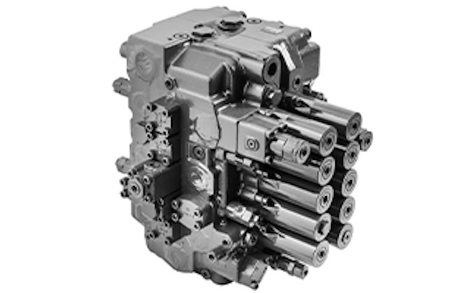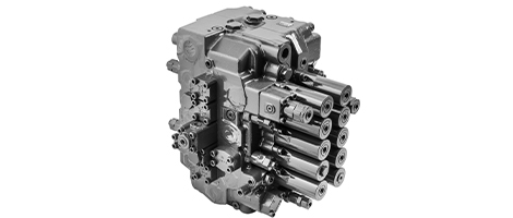 The main control valve provides independent operation of all the excavator components. It receives hydraulic oil from the main pump and distributes the oil to the hydraulic actuators (travel motor, swing motor, cylinders, etc.).