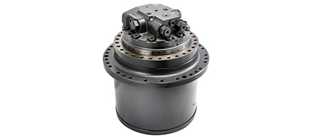 The travel device consists of traction motor and speed reducer, and drives excavator by rotating tracks or wheels. Hydraulic energy is supplied from the traction motor, converted to mechanical energy and transmitted by speed reducer.